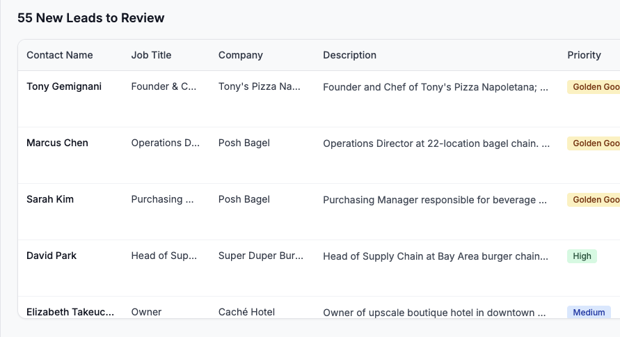 Pipeline automatizado de prospección que investiga, califica y organiza leads usando múltiples fuentes de datos, procesando cientos de prospectos por semana sin intervención manual.